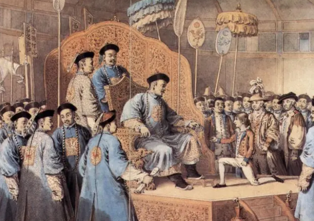 这件事发生在1793年,乾隆五十八年,当时代表英国的访华使团代表叫乔治·马嘎尔旗,他驾驶着一艘名叫“狮子号”的英国军舰,上面配有64门火炮及若干小挺,同时还有一艘东一度公司提供的载重1200吨重的大货船,名叫“印度斯坦号”。船上分别装着从欧洲运往中国广州港口的贸易品和英国乔治三世送给大清国康熙皇帝的礼物。