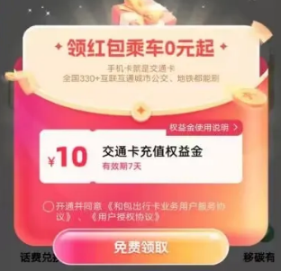 和包领10元交通卡充值权益金