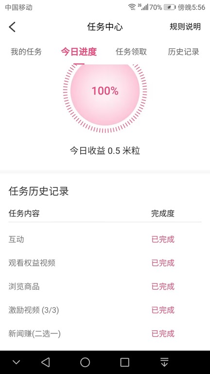 每天任务:我的~任务,完成所有日常任务!做完以后点任务中心,今日进度,刷新几次有0.5米粒就行了必须刷新,否则白做。