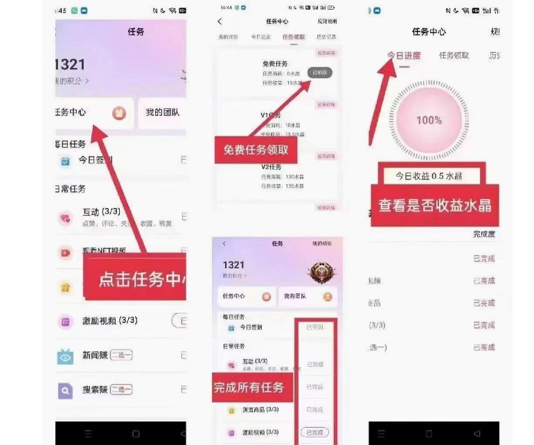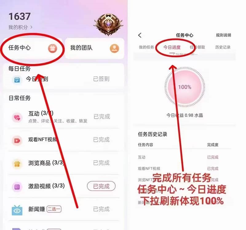 3、重点:完成每日任务后,一定要点开今日进度刷新后有收益后才可以,否则白干。