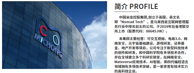 米虫隶属于米虫科技信息(深圳)有限公司,以元宇宙概念布局互联网市场 ,2021年分别在深圳、武汉成立了全资控股子公司,正式开拓M世代下的元宇宙概念版图 。