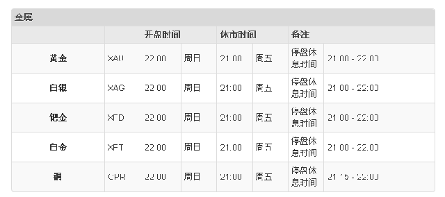 我们的宗旨是定期更新交易时间以确保交易产品与国际市场同步,如想获得更多以上交易产品的最新信息,请与联系我们。