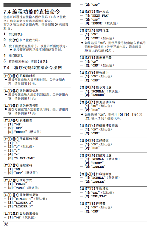 松下传真机KX-FT932CN 传真机进入编程模式修改参数