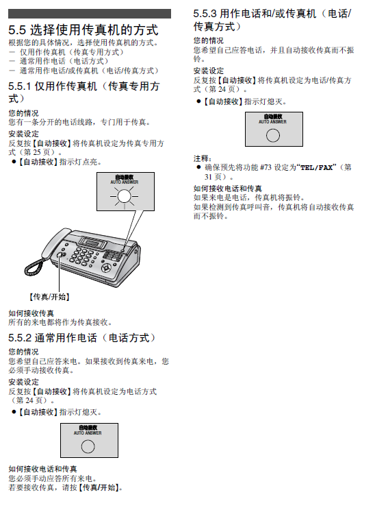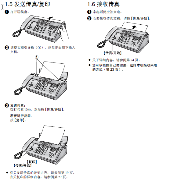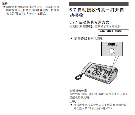 松下传真机KX-FT932CN 传真机手动自动接收传真步骤