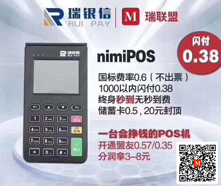 3、争取给每个客户都装两台机子,瑞和宝主要是用来立即成交客户,但是miniPOS和大POS的交易量是最稳定,性价比行业内最高,客户黏性最强。