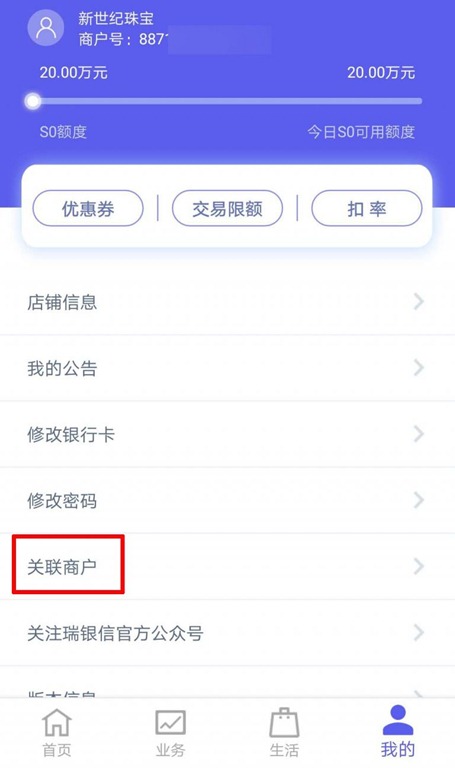 2、由于实时到帐额度是2000,需下载APP:瑞易生活商户版,激活账号,绑定商户,认证信用卡提高实时到帐额度,具体方法参考上面信用卡认证步骤: (交易小票商户名称下边就是商户编号)
