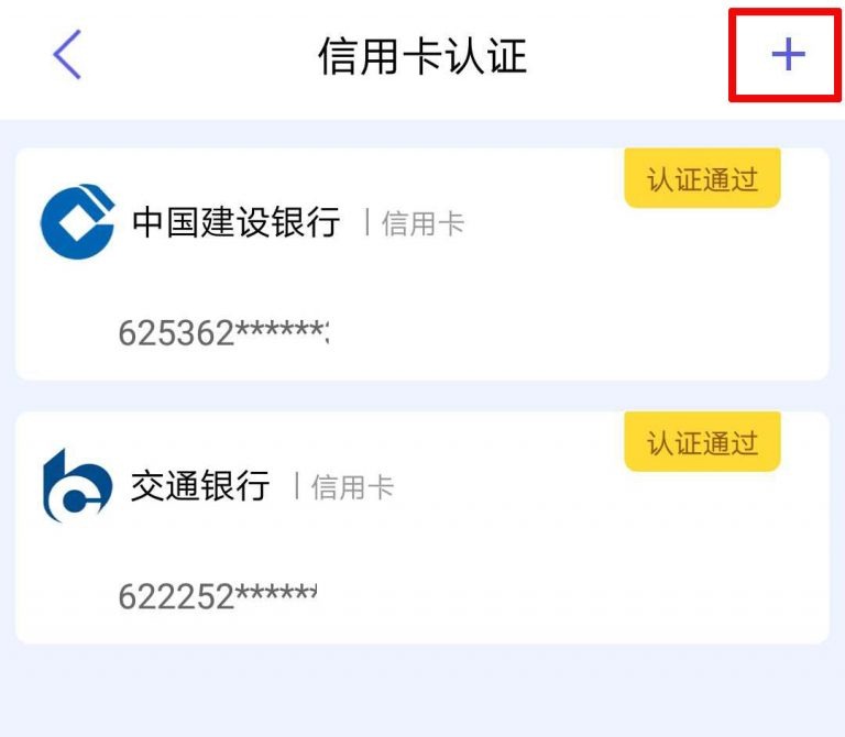 1)点击瑞易生活APP首页的信用卡认证,右上角点击“+”添加同法人的信用卡,输入信用卡卡号、有效期及银行预留手机号,获取验证码后即可验证成功。