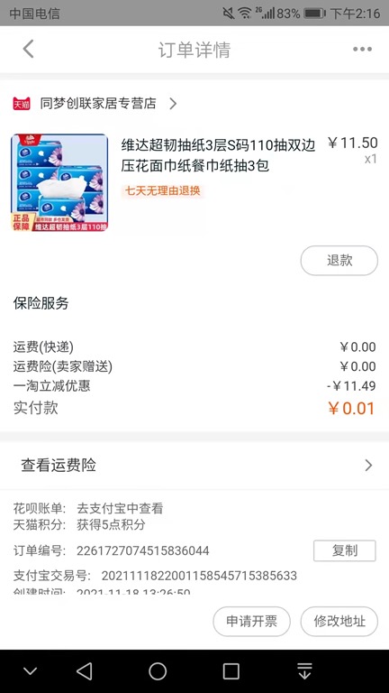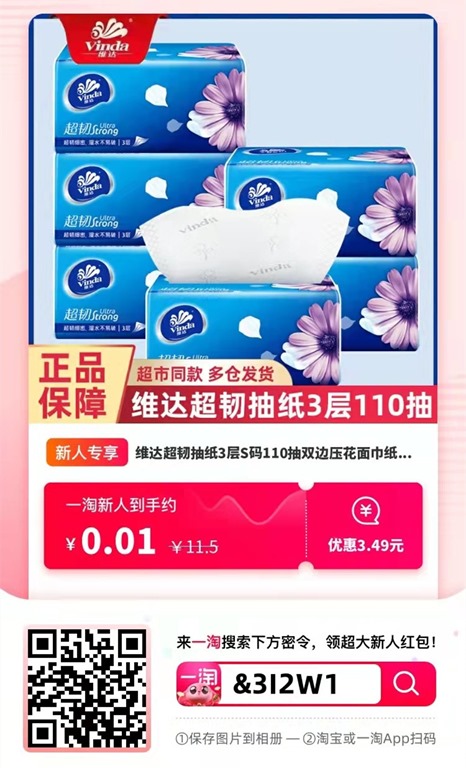 转载请注明文章来源:美奥黄金理财 - 美股 $ 黄金 » 美滋滋 《一淘》一分钱领纸巾