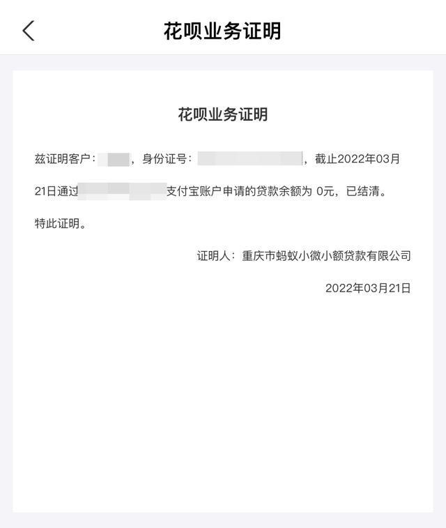 接着,软件会生成一个预览,证明你的花呗已结清,不存在任何拖欠。