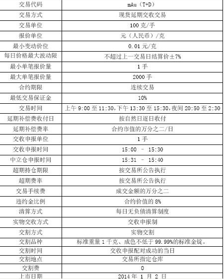 2、mAu(T+D)合约挂盘首日的基准价为Au(T+D)合约前一交易日的结算价。