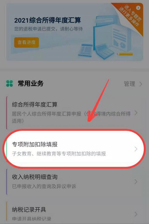常用业务里选择专项附加扣除申报