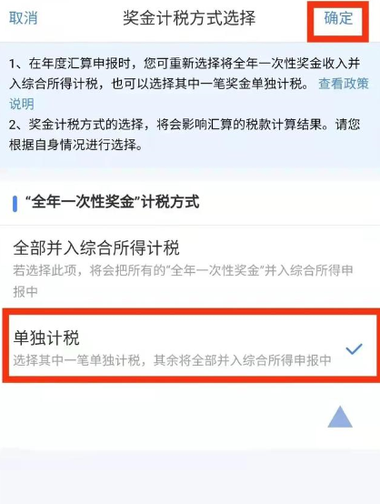 在这里,一般选择单独计税,这样算下来的税费要少一点,到时候退税的话也会退得比较多。