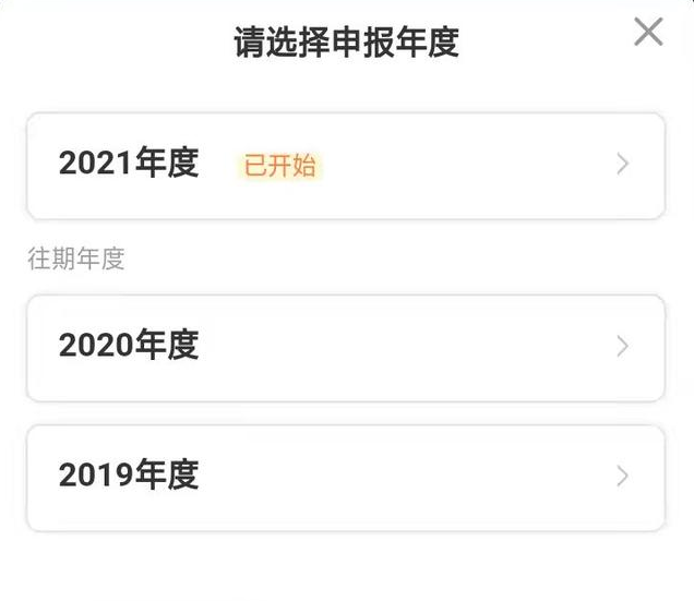 选择申报年度2021年度