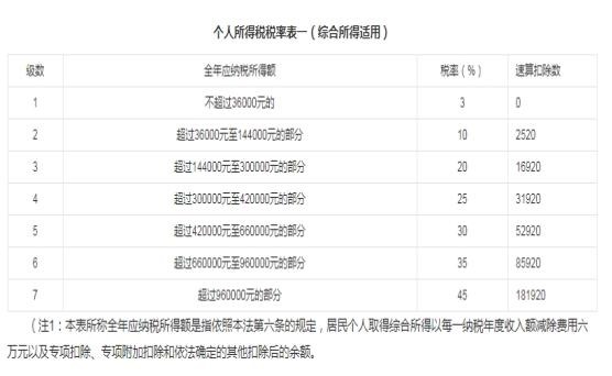 个人所得税税率表一