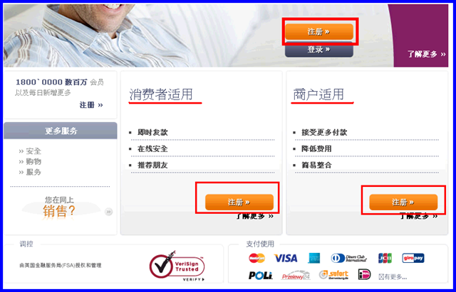 一般注册用户, 请点选 [消费者适用] 底下的 [注册] ! 商家店家或公司行号, 请点选 [商户适用] 底下的 [注册] !