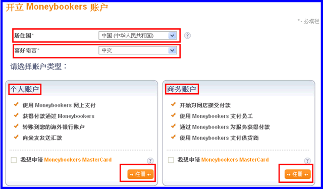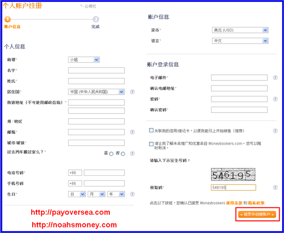 ◆ 三. 开始填表申请Moneybookers账户 :