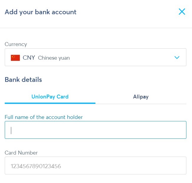 转账时,Wise用户只需要接收者的名字和支付宝账号就可以开始转账,这些钱将被发送到与收款人的支付宝账户相连接的银行账户。