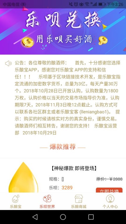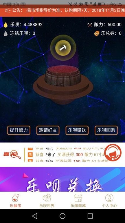 樂唄就相當於酒鏈世界的聖酒,樂唄可以直接在平台交易也可以兌換酒。
