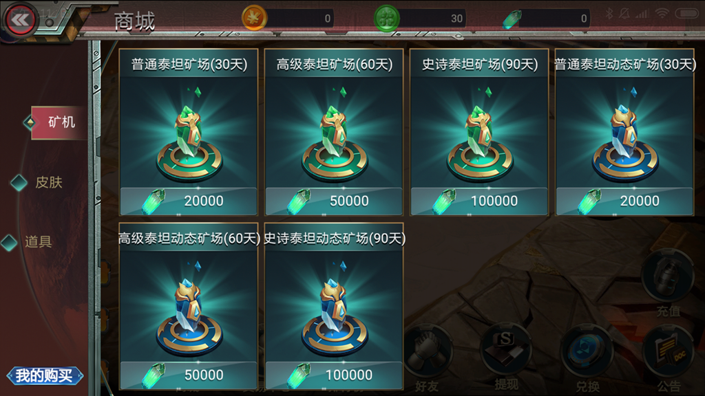 道具商店,除購買礦機外,隨即出售雙倍收益卡,讓你的收益倍增。