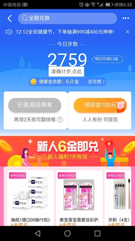 用平安好醫生app計步走路就能賺錢一天六元,賺的錢只能兌換他們的商品不能提現 !