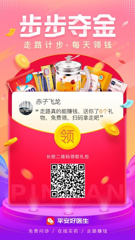 《平安好醫生》,註冊送10元,每天運動鍛煉用計步走路賺錢六元,健康金可兌換精美實物禮品,穩定羊毛!![]()